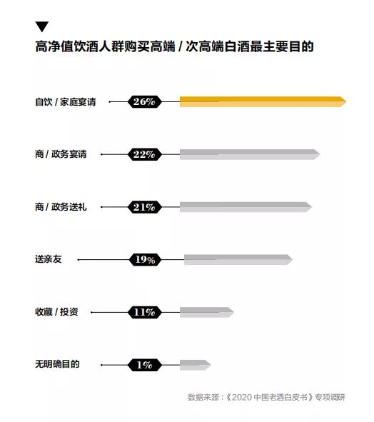 根据数据显示,2018 年老酒购买人数达1068万人,是2013 年的购买人数的3.8倍。报告预测,未 3年,老酒价格 将不断上升,消费人群持续增加,老酒市场规模也会不断扩大。2021 年,老酒的市场规模或将达到千亿,迎来属于它的“黄金时代”(数据引用胡润百富2020中国老酒白皮书)。