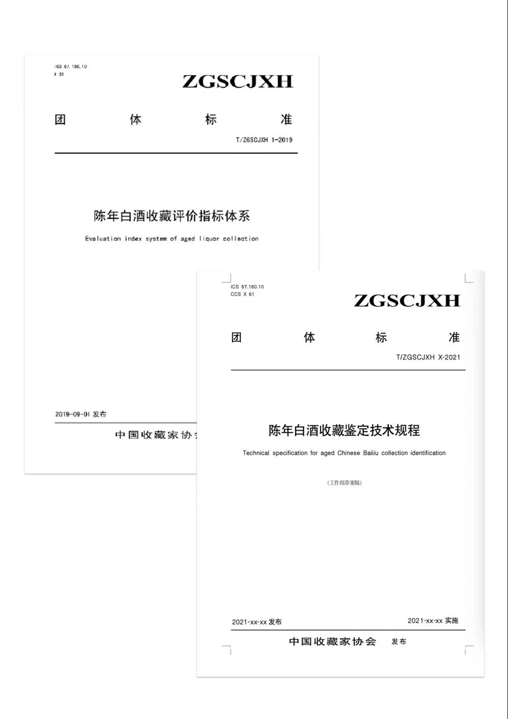 中国收藏家协会早在2017年就建立“收藏行业诚信建设”课题组,并联合中国标准化研究院、江苏省质量和标准化研究院、江南大学生物工程学院、阿里巴巴集团(阿里拍卖·老酒集市)以及老酒收藏行业的专家学者,在如何“规范老酒收藏行业”这一课题上不断研究、探索,于2019年首次在全国团体标准信息公示平台发布了《陈年白酒收藏评价指标体系》团体标准,并明确了陈年白酒的定义。为老酒收藏行业提供了老酒收藏、评级可借鉴、参考的唯一标准。于2021年5月又在全国团体标准信息公示平台发布了《陈年白酒鉴定技术规程》团体标准,再一次明确了老酒鉴定的相关技术标准。为老酒市场未来会朝着“标准化、专业化”方向发展打下了坚实基础。